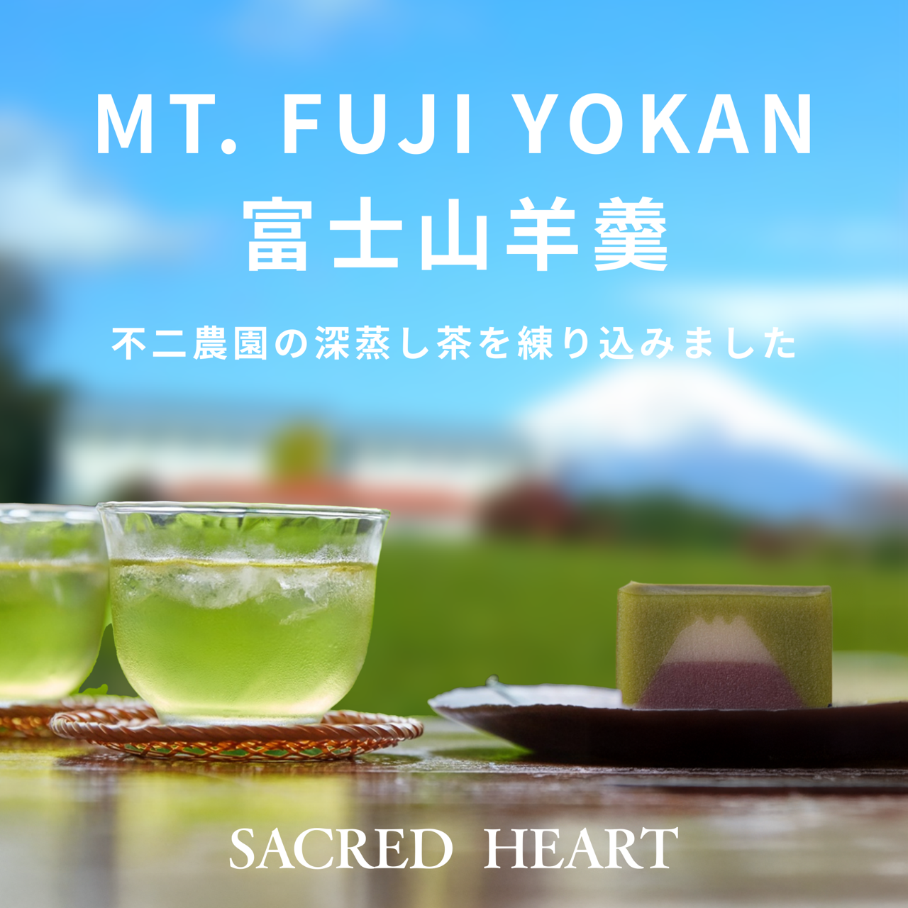 不二農園の緑茶「聖心の深蒸し茶」を使用した緑茶羊羹、『富士山羊羹』がドゥシェーン会のオリジナル商品として新登場します。